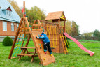 Детская площадка Выше Всех Новая Победа 22 разработана как для индивидуального использования на большом участке, так и для общественных мест на территории СНТ или коттеджных поселков. Модель отличается широким набором элементов, которые будут интересны как малышам, там и детям постарше. Изюминка модели Новая Победа 22 является мостик, соединяющий два моделя: качельный и модуль со скалодромом и сеткой-лазалкой. На этом мостике можно поиграть в крестики-нолики, можно использовать по прямом назначению, а можно разыгрывать целые ролевые сюжеты с поисками кладов, спасением принцессы из башни или захватом пиратского корабля! Какая бы фантазия не посетила вашего ребенка, он сможет ее реализовать на площадке Новая Победа 22.