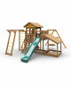 Детям постарше безусловно понравится яркая двухволновая горка со скатом 2.7 метра. А для культуристов предусмотрен уточйчивый модуль с металлическим турником.
