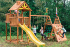 Детям постарше безусловно понравится яркая двухволновая горка со скатом 2.7 метра. А для активных и подвижных в этой площадке предусмотрен рукоход с удобным входом и модуль с металлическим турником.