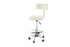 Стул круглый для массажиста, оборудованный газ-лифтом для регулировки высоты. Удобная спинка и кольцо для поддержки ног.