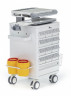 - Основание установлено на 4 самоориентирующихся колеса Ø125 мм из серой резины, 2 с индивидуальным тормозом